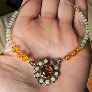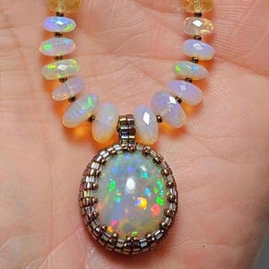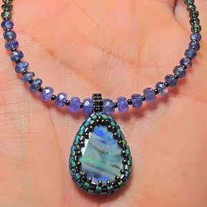 New! Incredible, large Mexican Opal in Matrix, with Tsavorite, Emerald, Apatite, Kyanite, and Tanzanite gem beads.