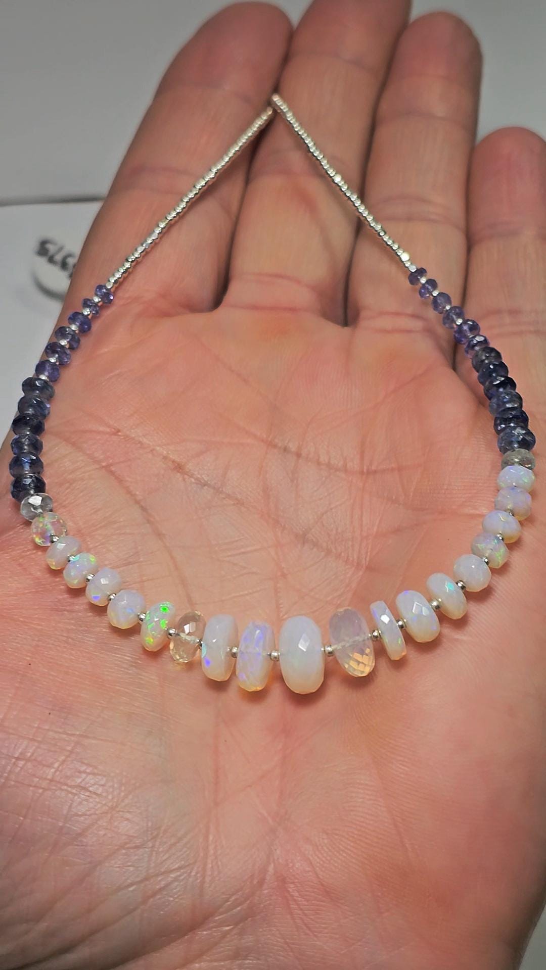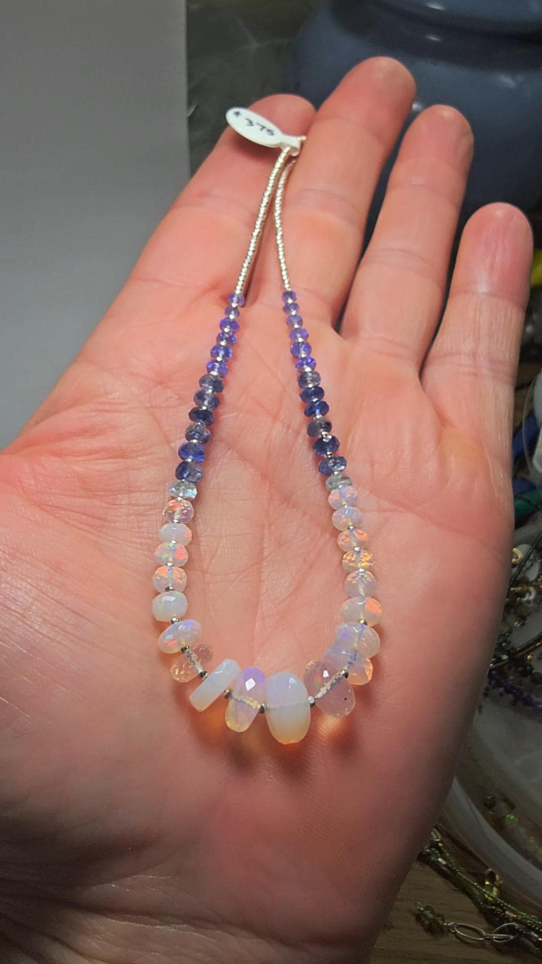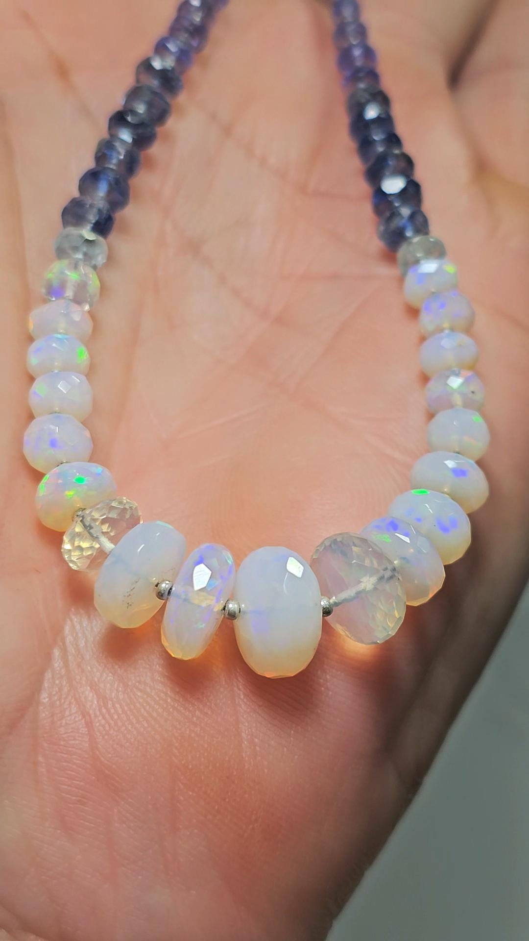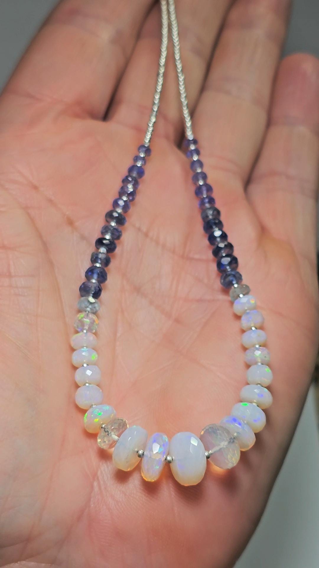 Beaded Necklace: Faceted, Graduated Ethiopian Opal, Kyanite, Iolite, Tanzanite Gemstone Beads